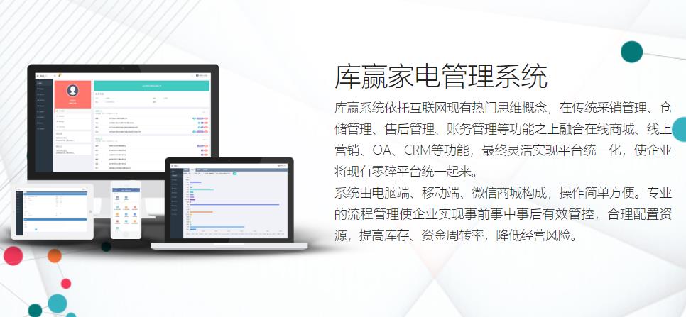 库赢系统由电脑端、移动端、微信商城构成,数据可进行实时传递以及移动端动态提醒,帮助员工更快更便捷的开展工作。